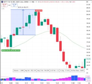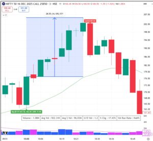 9th December 2025 Nifty Gap down 50 points and continue to go down. I was waiting for my setup but due to continue down wards I took downside trade and booked around 2.3k Rupees with capital of just 17k. Return percentage was 13.8.